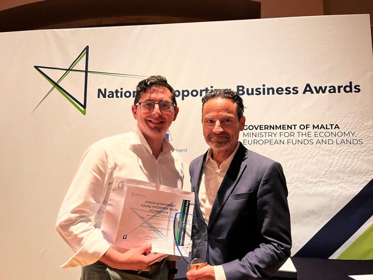 In another milestone reached for JA Malta, we will be representing Malta in the European Enterprise Promotion Awards in Bilbao in November 2023. Through our SkolaSajf Programme, we earned second place in the “Investing in Entrepreneurial Skills” Category at the National Supporting Business Awards. “This award is another testament to the work JA does and gives us more opportunities to reach more people, as we have strong evidence that our programmes deliver impact in preparing youth for the future” said Junior Achievement Malta CEO Matthew Caruana.