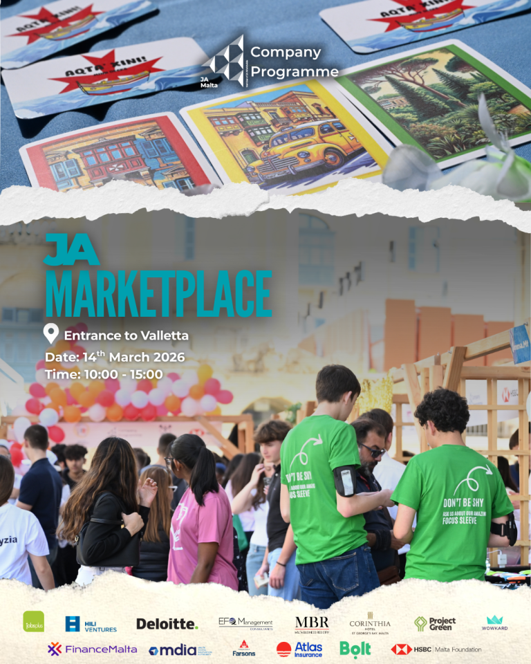JA Malta extends its sincere appreciation to its partners: Deloitte, Jobsplus, HSBC Malta Foundation, Hili Ventures, EFQ Management Consultants, Project Green, Malta Business Registry (MBR), Corinthia Hotels, FinanceMalta, Malta Digital Innovation Authority (MDIA), Farsons Group, and Bolt for their continued support in making Marketplace 2026 possible.